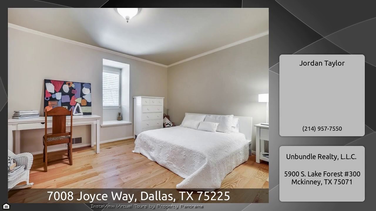 The Virtual Tour for the property at 7008 Joyce Way, Dallas, TX 75225 listed for $748,900: Other homes for sale by Jordan Taylor of Unbundle Realty, L.L.C.: Charming and beautifully updated home in the highly sought after Preston Hollow neighborhood. Close to Preston Hollow Village, Highland Park Village and Windsor Park. The vaulted ceiling entry way with marble flooring leads in to a magnificent living and formal dining area. The large kitchen is a dream with eat in island, high end Italian cooking range, built in wine cooler, and ice maker as well as glass front cabinets. The private …