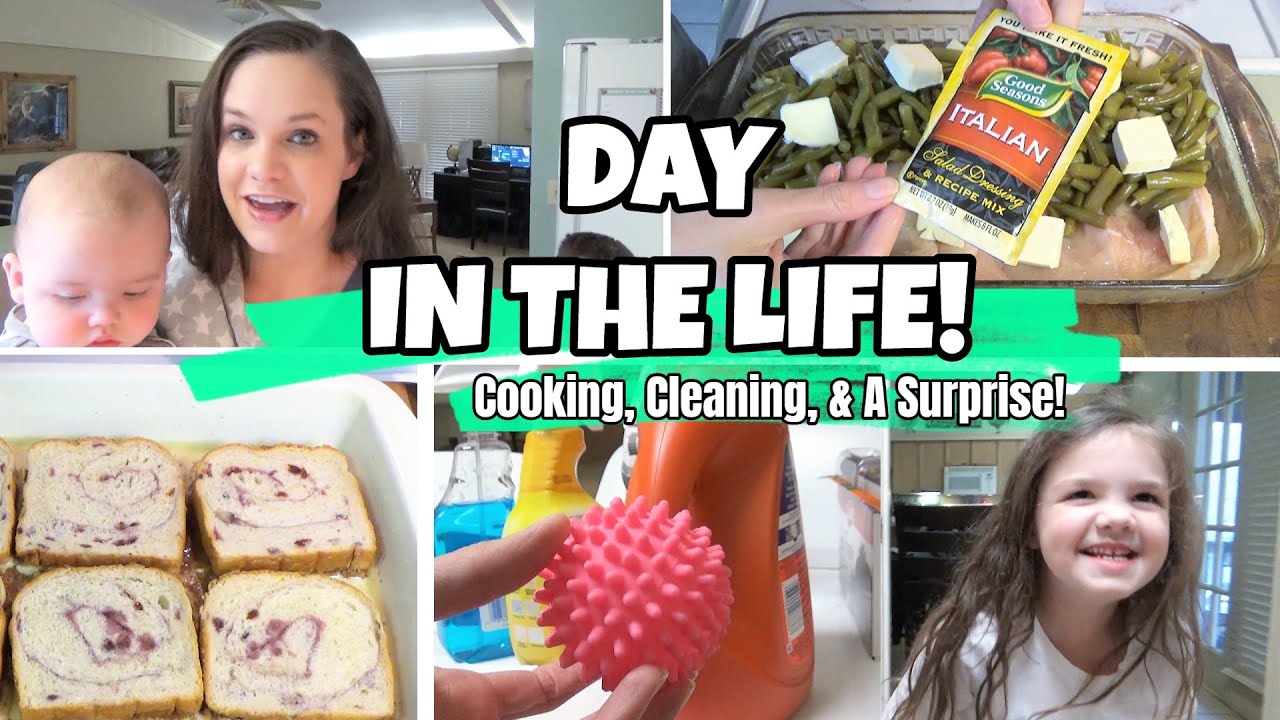In today’s Day In The Life we bring y’all along for some Saturday fun! LOL! Titus (dad) and the older boys (Jake & Tyler) are gone to work for an old friend he used to train horses for. He wanted them to come ride some horses and work some cattle with them for a little while so they could be brushed up to show to potential buyers. Meanwhile back at the house I’m doing some Saturday chores, after spending the morning in my PJ’s watching Saturday morning cartoons of course! LOL!! When Titus and the boys get home they bring a surprise with them!