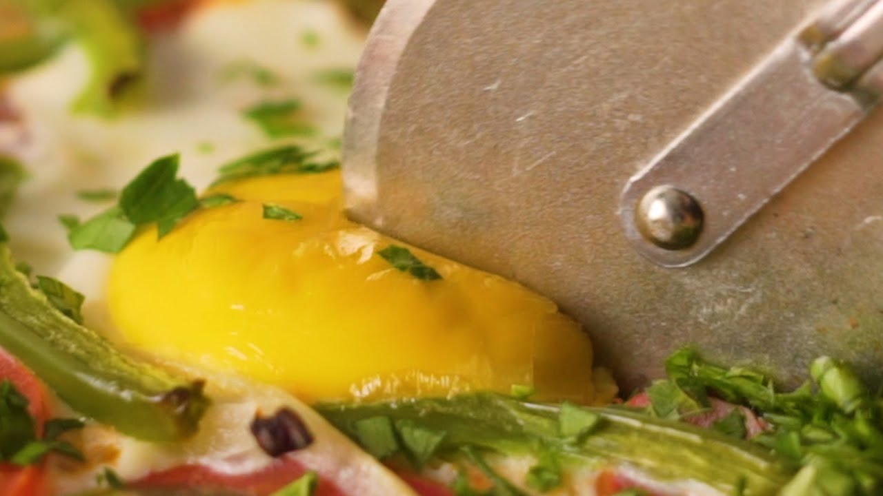 2. Gently crack the eggs onto pizza and bake at 220C for 10-12 minutes until dough is browned and eggs are cooked.