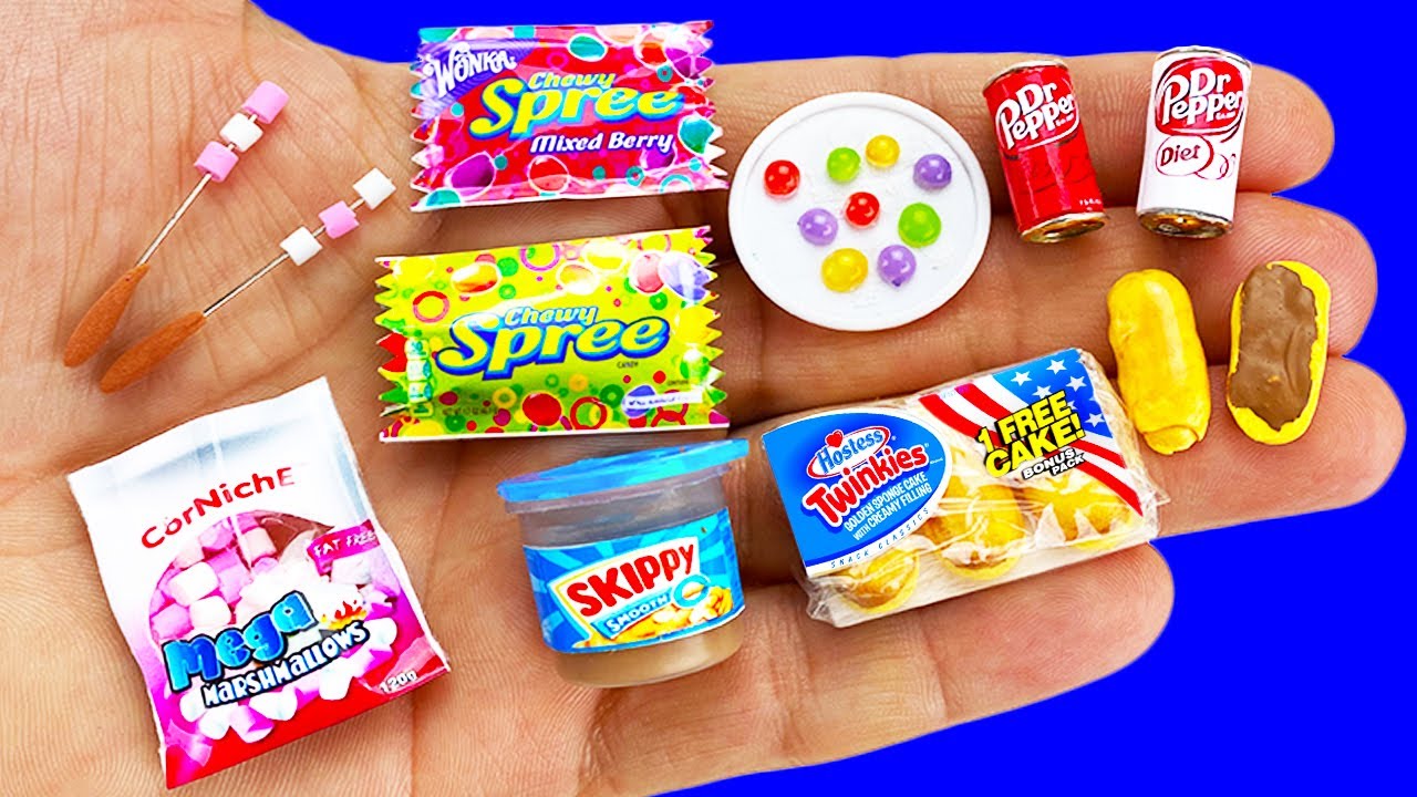 In this video about realistic miniature crafts and DIY crafts and just miniature hacks, I will show you how to make mini realistic hacks and crafts from simple materials. I will make 14 DIY Ideas, namely: mini sponge cake twinkies, mini willy wonka sweets, mini peanut paste skippy, mini dr pepper, mini corniche marshmallows and other diy miniature crafts. Check out my new do-it-yourself video and make diy miniature hacks :