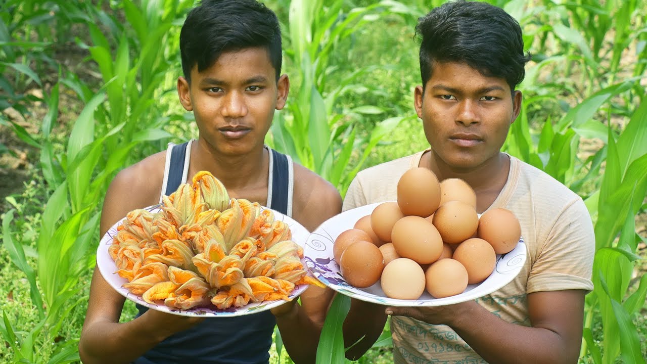 Egg & Pumpkin Flower fry Recipe Cooking – Village Style – Awesome Cooking