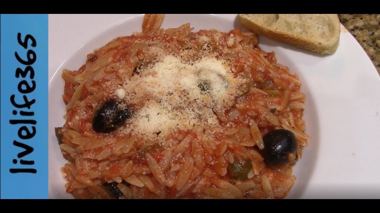 Another killer recipe by Mike. This baby is loaded with garlic, olives, crushed tomatoes and tiny little pasta called orzo. Top it off with grated Parmesan cheese and you have a delicious dinner. Subscribe to livelife365: