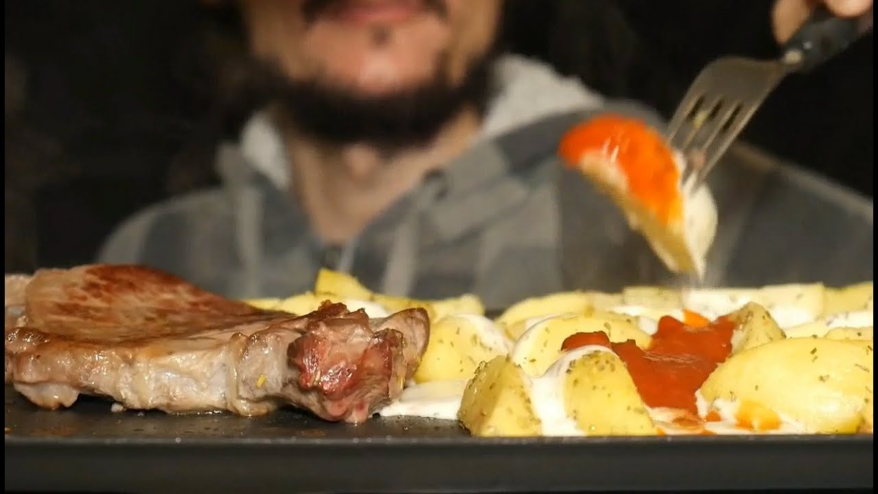 ASMR EATING MEAT + PATATOES COOKING SOUNDS ON THE GRILL WHITE NOISE+ EATING SOUNDS *ITALIAN MUKBANG ITA FOOD