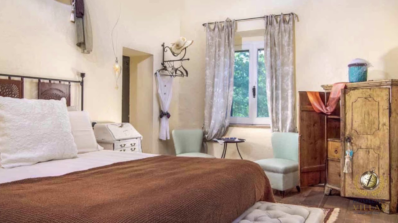 the area also features the travertine of the bathrooms, the headboards of the beds, the designer taps and fittings antique furnishings which, together with many family objects, lend a charm unique to many rooms.