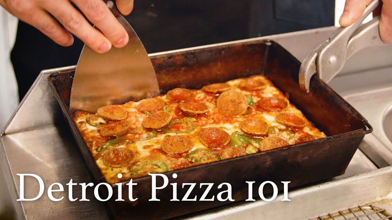 Matt Hyland, chef and owner of Emmy Squared shows us how to make one of their signature Detroit-style pies, the Colony2. This crunchy squared pie combines cheeses with perfectly cupped pepperoni, pickled jalapeños, and a drizzle of honey. Full recipe below.