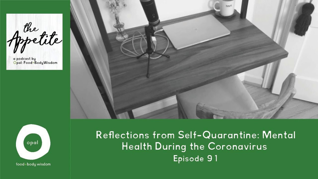How can we best prepare for the psychological impacts of social distancing during the age of Coronavirus? In this episode, host and therapist Carter Umhau, LMHC shares her experience with self-isolating a couple weeks ahead of the curve in Seattle, a city already ahead of the curve in shelter-in-place mandates than most other US cities. Opal: Food + Body Wisdom’s Co-Founders, Lexi Giblin, PhD, CEDS, Kara Bazzi, LMFT, CEDS, and Julie Church, RDN, CEDRD-S, CD, ask Carter the questions, exploring topics such as loneliness, loss of routine, experience of food, and relationship to exercise during this unprecedented time. Julie, Lexi, and Kara offer insights and wisdom from their areas of mental health and eating disorder expertise. While this episode speaks to the privileged experience of getting to self-quarantine and work from home, it doesn’t significantly address the growing economic crisis or the experience of the many people working jobs to keep the rest of us afloat, with no option to stay at home. Despite these gaps, we hope this conversation offers you a place to find resonance and support while we all live into the new, challenging realities of the COVID-19 pandemic.