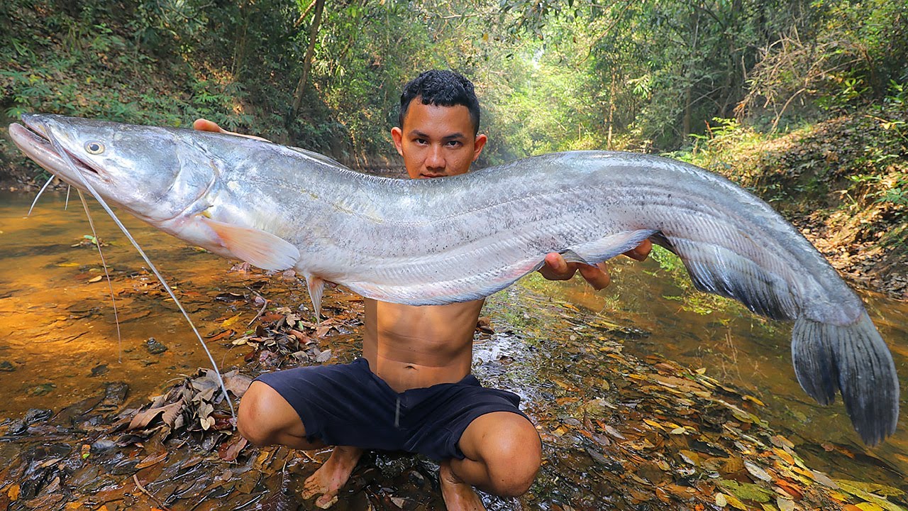 Amazing Man Cooking Monster Fish for Dinner in Forest