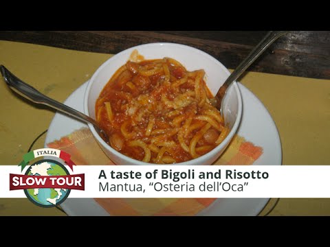 Do you like Italian food? We are in Mantua, at the restaurant Osteria dell’Oca, the European academy of Risotto, Mantuan style. Let’s try typical “Risòt menà” (beaten risotto) and Bigoli pasta with anchovies. Come and taste!