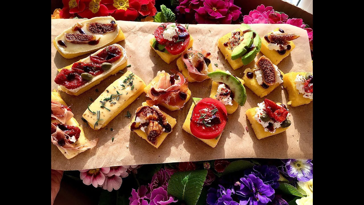 I really like this option of bruschetta, unlike bread, polenta does not soak under the filling, and always remains with a crisp!