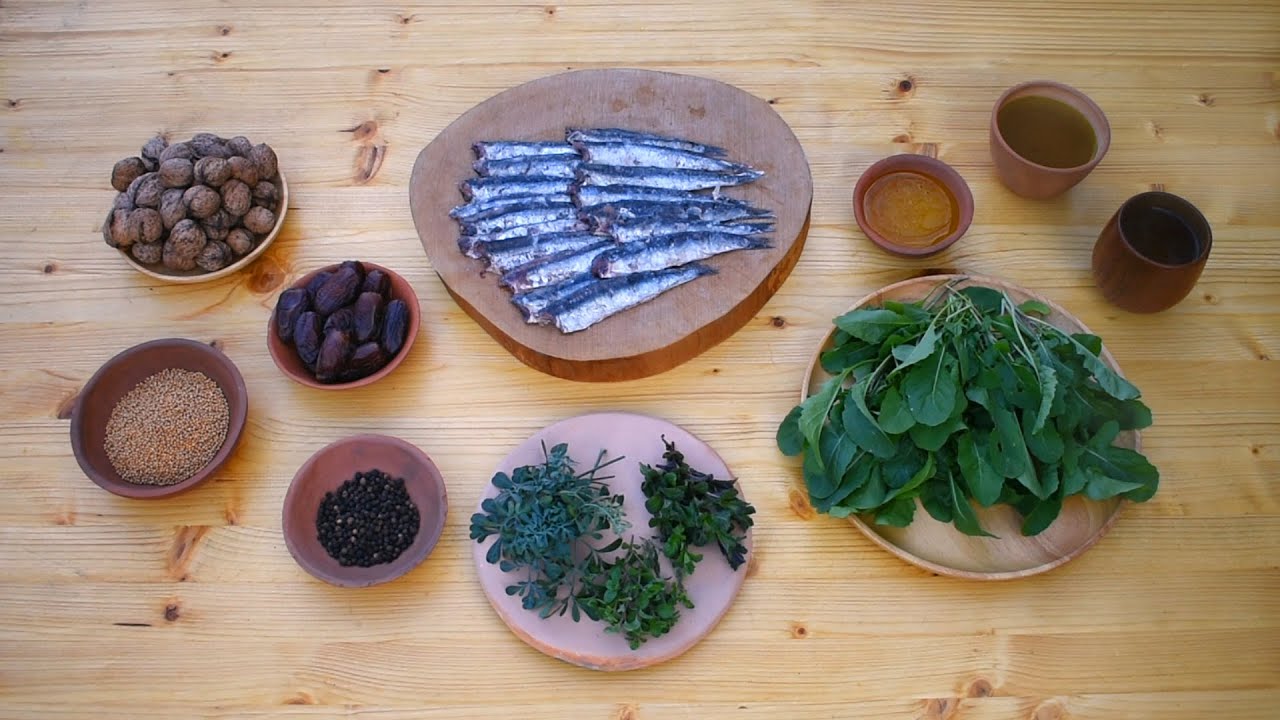 Salted fish and an arugula-based sauce. The perfect way to begin your ancient Roman meal with a combination of flavors well balanced and intense.