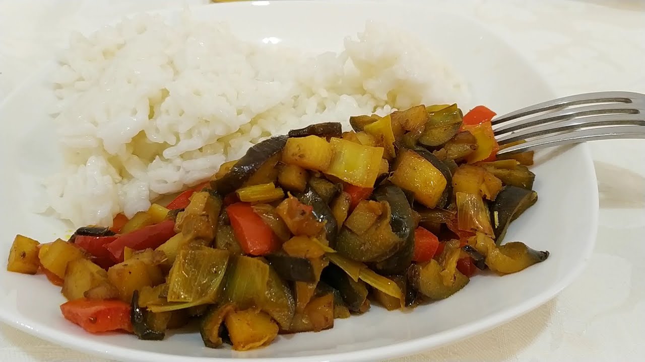 Dì sān xiān (地三鲜) is a typical vegetarian food of the Northeastern Chinese cuisine that is made by the combination of eggplant, sweet peppers and tomatoes. The name means “three treasures from the earth” because it uses three of the most delicious vegetables. Enjoy this variant cooked in a wok with fewer oil.