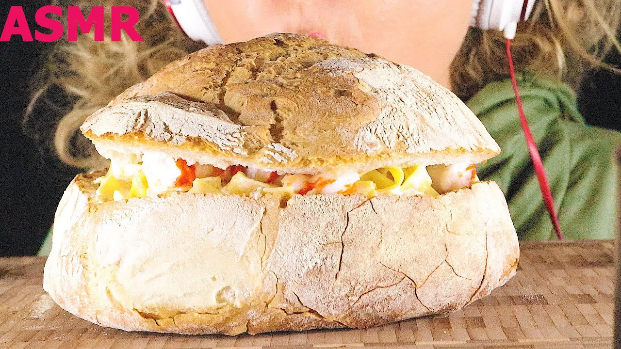 ASMR MUKBANG ITALY COCCIO DI PANE RIPIENO DI FETTUCCINE ALFREDO | Real Eating Sound |No Talking |