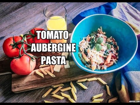 Tomato, aubergine, pasta, olive oil, fresh basil leaves, salt to taste.