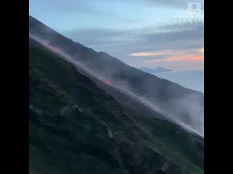 Lava and ash flowed from Italy’s Mount Stromboli after the eruption of the volcano in the Tyrrhenian Sea.