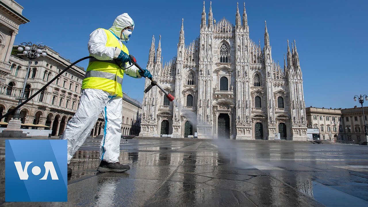 Environmental Service workers began sanitizing Il Duomo square, which hosts the famous Milan Cathedral, Tuesday, March 31, as part of efforts to contain the spread of COVID-19.