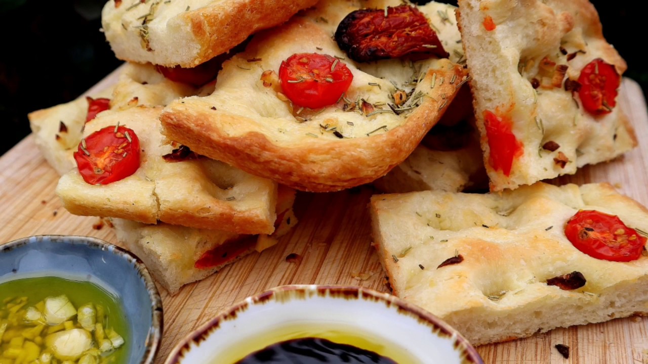Focaccia bread. The delicious flatbread from Italy. Aromatic, golden crunchy on the outside, soft and chewy on the inside. Very easy to make and beautiful to eat. Make sure you try it today!