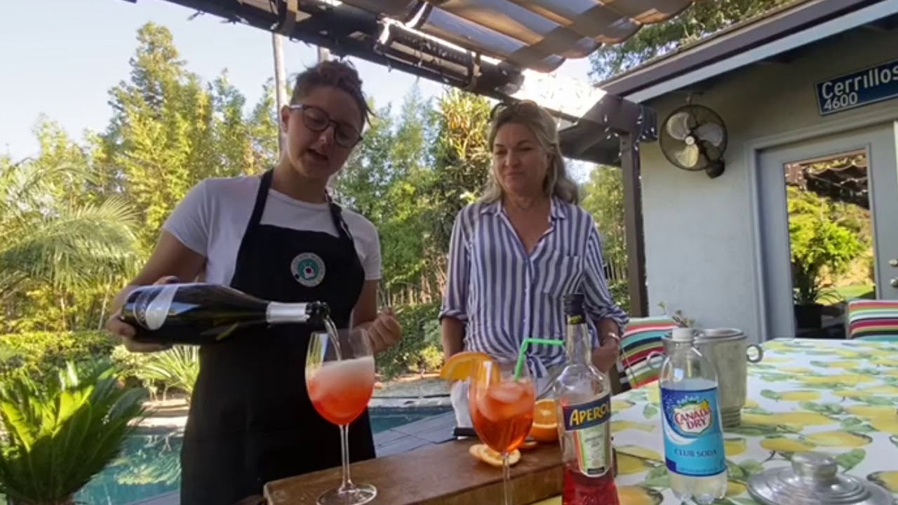 Coleen Kirnan and Arianna Moldovan, a lifelong resident of Tuscan Women Cook’s home base of Montefollonico Italy, prepare an Aperol Spritz. It is one of the most popular aperitivi in Italy and easy to make. Enjoy at home and during the week-long, hands-on total cooking immersion program offered by Tuscan Women Cook every spring and fall.