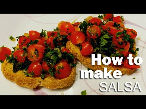 This Homemade restaurant-style salsa is one of our most frequently made recipes at home. This is very easy to make. You just need to cut up fresh cherry tomatoes, onions, cilantro, parsley, and add in some lime juice, olive oil and white wine vinegar and seasonings.