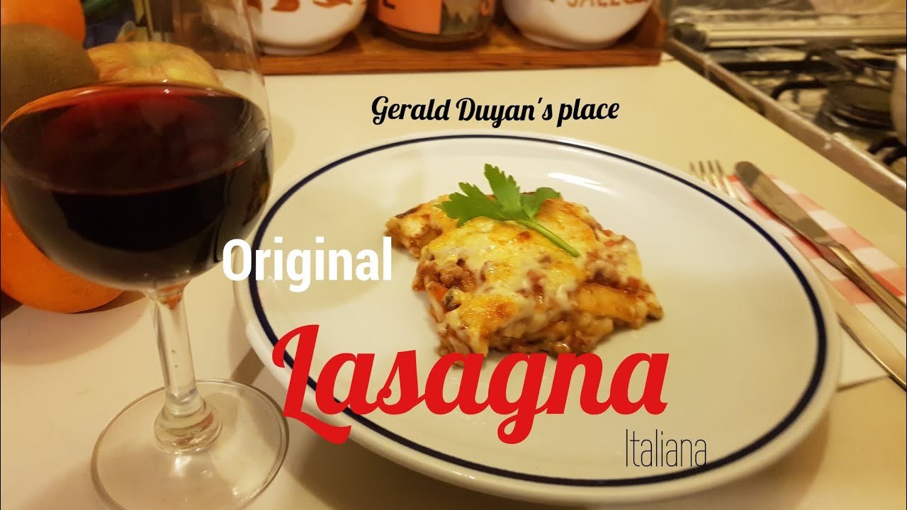 Lasagna is an Italiam dish made of stacked layers of this flat pasta alternating with fillings such as ragù (ground meats and tomato sauce) and other vegetables, cheese (which may include ricotta and parmesan), and seasonings and spices such as garlic, and basil. The dish may be topped with melted grated parmesan mozzarela cheese. Typically, the cooked pasta is assembled with the other ingredients and then baked in an oven. The resulting lasagne casserole is cut into single-serving square portions.