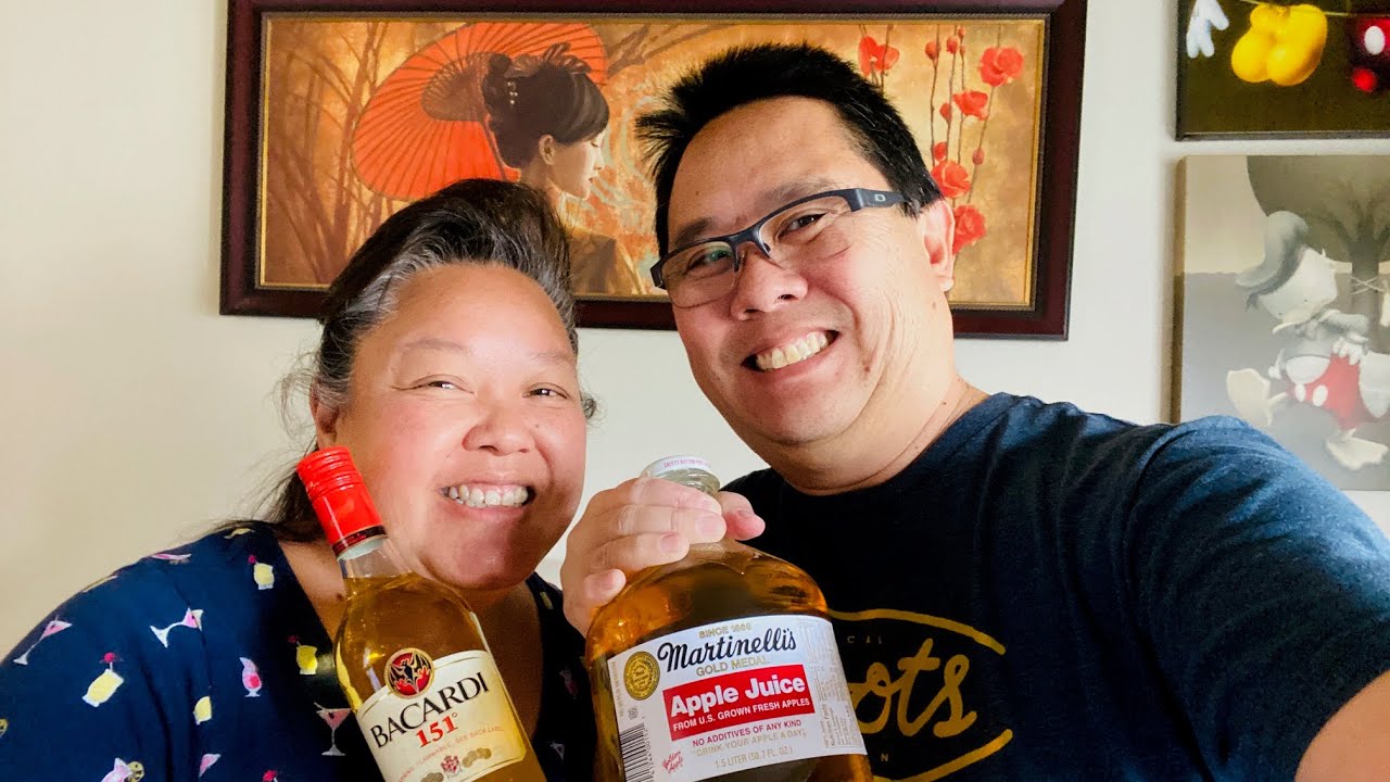 Heat apple juice, 2 cinnamon sticks, and sugar and bring to a boil. Remove from heat, let cool to room temperature. Add Bacardi 151. Stir well and refill Martinelli jug adding 2 new cinnamon sticks. Refrigerate, serve chilled (in shot glasses if available). Enjoy!