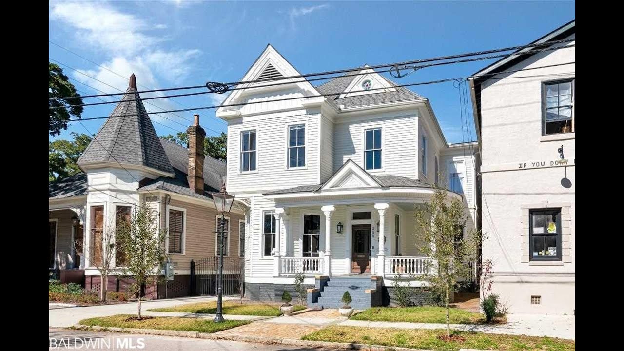 Stunning Victorian built in 1895. Totally RENOVATED (down to the studs) in 2019, a true labor of love. Located in Historic Detonte Square. Live and play in Downtown. So many unique features including 3 stained glass windows, one from a Church in New Orleans (10×5). Pull open the secret bookcase under the stairs and find a hidden 1/2 bath under the steps. Elegantly restored hardwood floors. Laundry near the bedrooms. Balcony off the master. Formal Living room used as an office with a bay window & lots of natural light. Formal dining room, den, & upstairs loft. Loft is perfect for reading. Wait till you see the kitchen. It will WOW you with it’s striking Italian marble counter tops, White & bright cabinets, Kitchenaid appliances, beautiful back splash, Technogas superior gas stove with pot filler above it, Farmers sink with filtered hot water, breakfast nook & island perfect for prepping & cooking, soft close drawers. Lets go upstairs to the the master bath which you enter through 2 antique doors. looking into a modern version of a claw foot tub, frame less, glass shower doors on the walk in shower, pocket doors on the 2 walk in closets & dual sinks. This bathroom is spectacular. Jack & Jill bath between the other 2 bedrooms. Featured in the Mobile Bay monthly in April 2019. Fireplaces have gas lines so someone could add vent less gas logs if they would like. Besides the open front porch there are upstairs & downstairs balconies on the back. Parking is in the rear and you can enter from side street. This home is stunning. You will not want to miss out on the unique opportunity. (ANY/ALL UPDATES ARE PER SELLER). LISTING BROKER MAKES NO REPRESENTATION TO SQUARE FOOTAGE ACCURACY. BUYER TO VERIFY.
