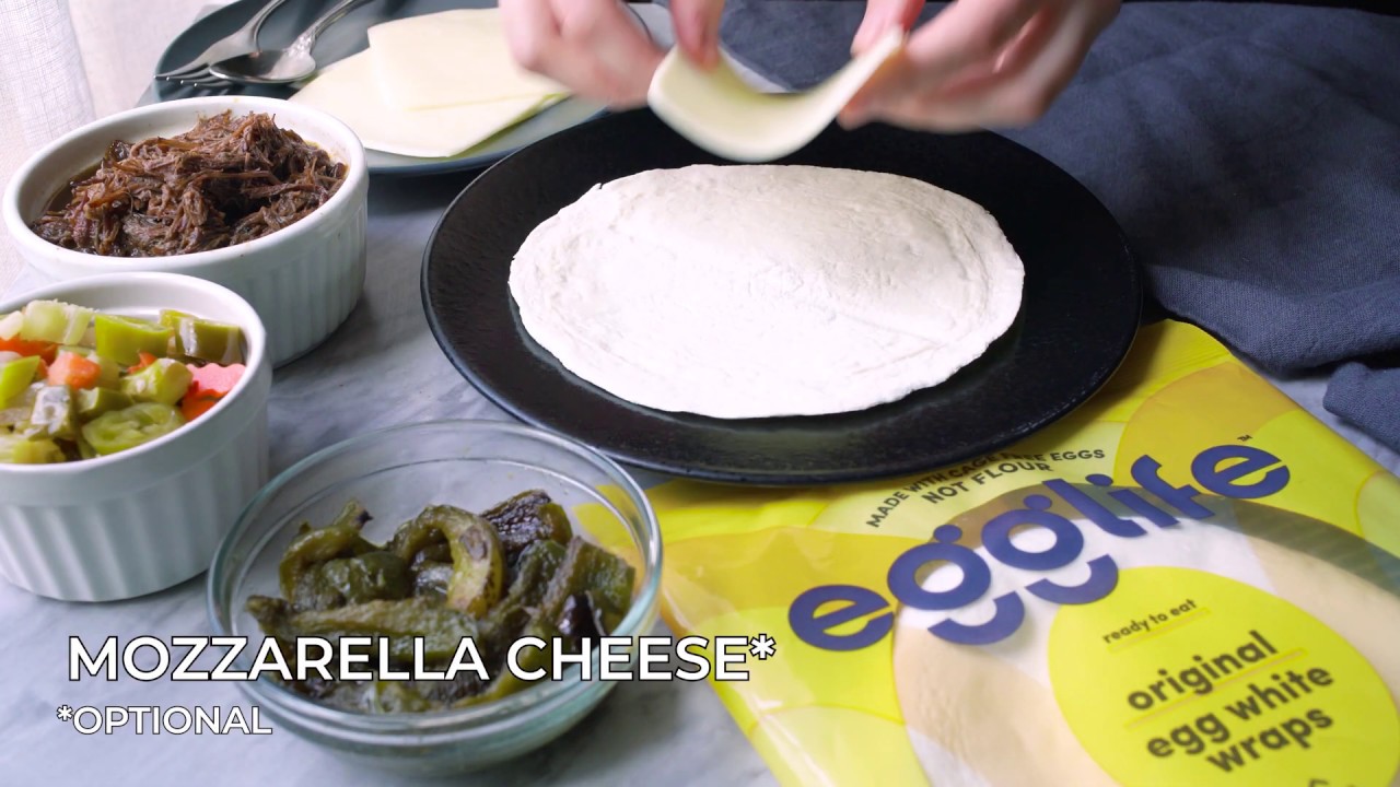 Delicious Low Carb Chicago Style Italian Beef Inspired Wraps! We used egglife egg white wraps as a low carb alternative to a French roll traditionally used n a Chicago style Italian beef sandwich.