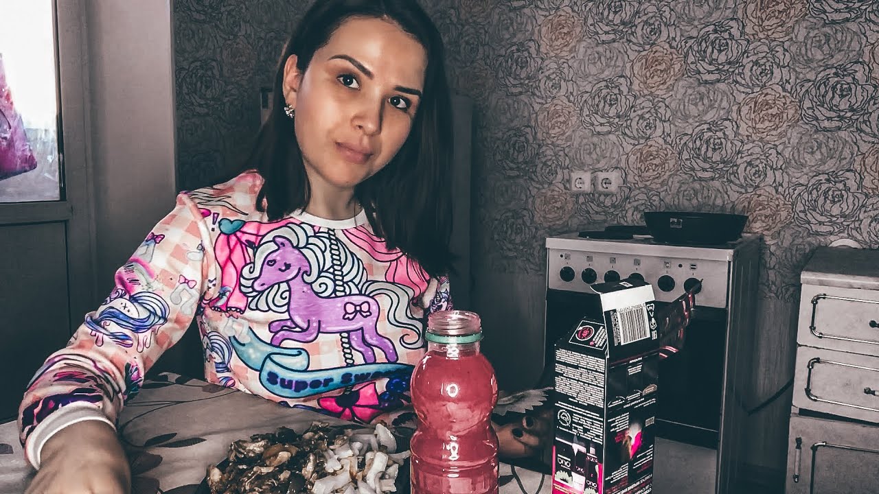 MUKBANG Girls eat. Favorite food • Potatoes with mushrooms, chicken fricassee and strawberry juice • Video broadcast 2020