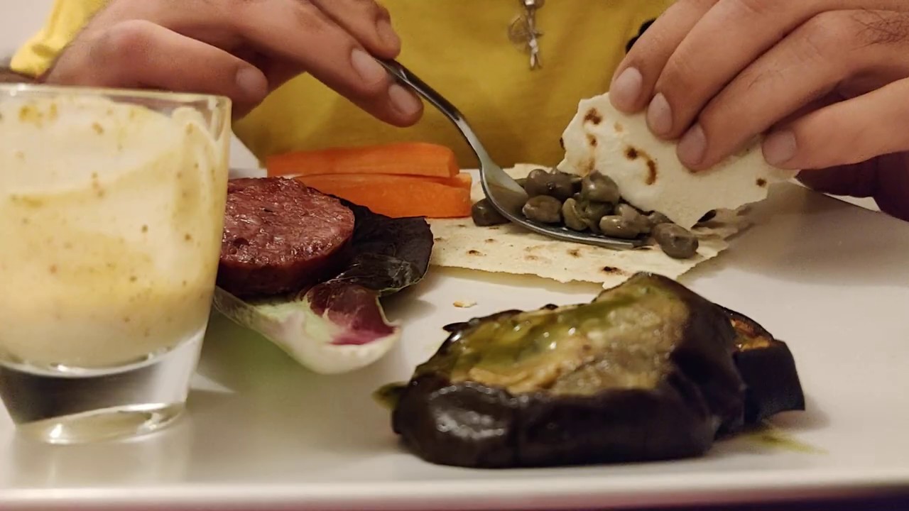 2) Fava beans with tropea onion and fresh mint on carasau bread