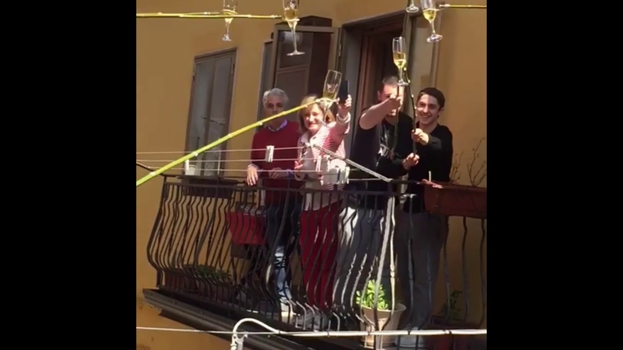 a wine toast from Distance balconiescamera phonecheersCoronavirusfreeitalianItalian WineItaliansItalyItaly WineLocksharinguploadvideovideo phoneVlogwineYouTube