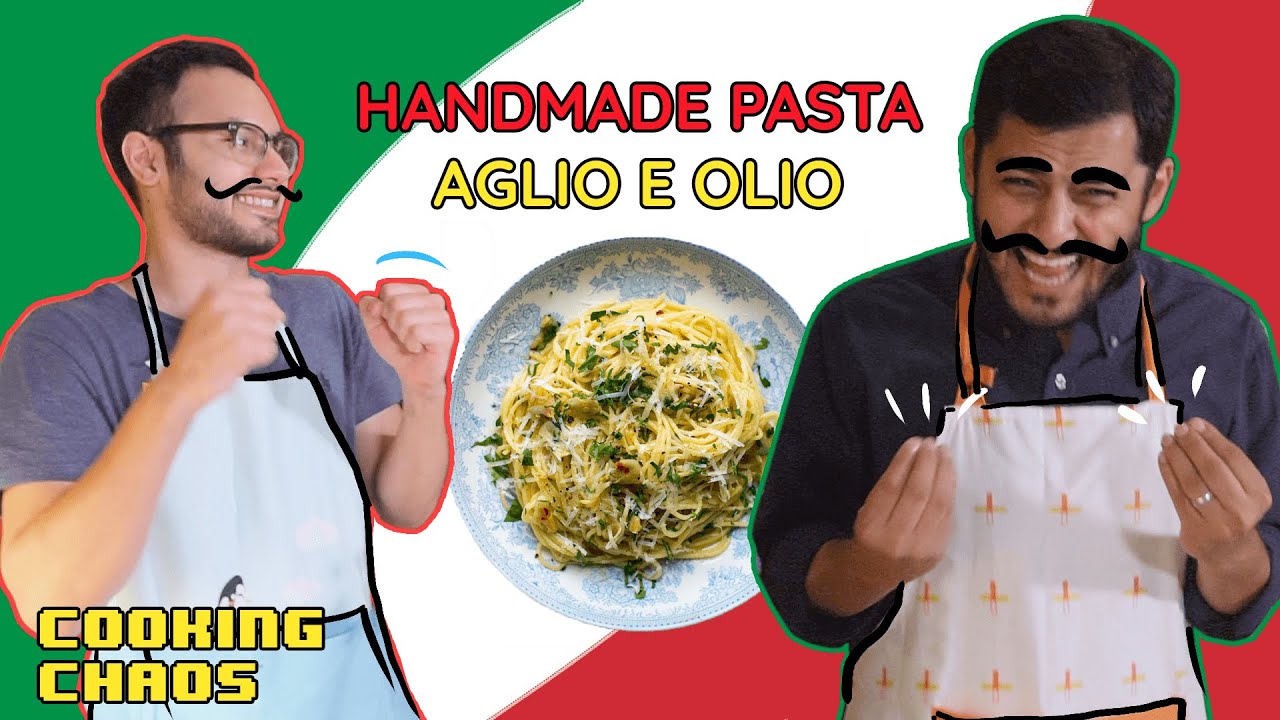 In this one, we make handmade pasta – from SCRATCH. And we make authentic Italian food, none of that chicken alfredo silliness in OUR KITCHEN.