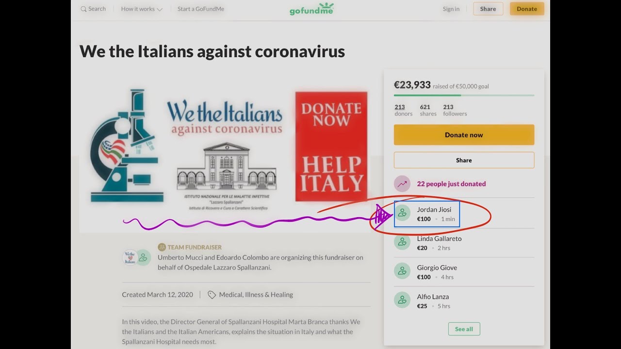 As a proud Italian, I have made a €100 donation to the Lazaro Spallanzani Hospital in Rome relief campaign that will directly help the specialized infectious diseases hospital and its patients in combatting COVID-19 by providing resources and personnel that are experiencing scarce supplies with much needed demand.