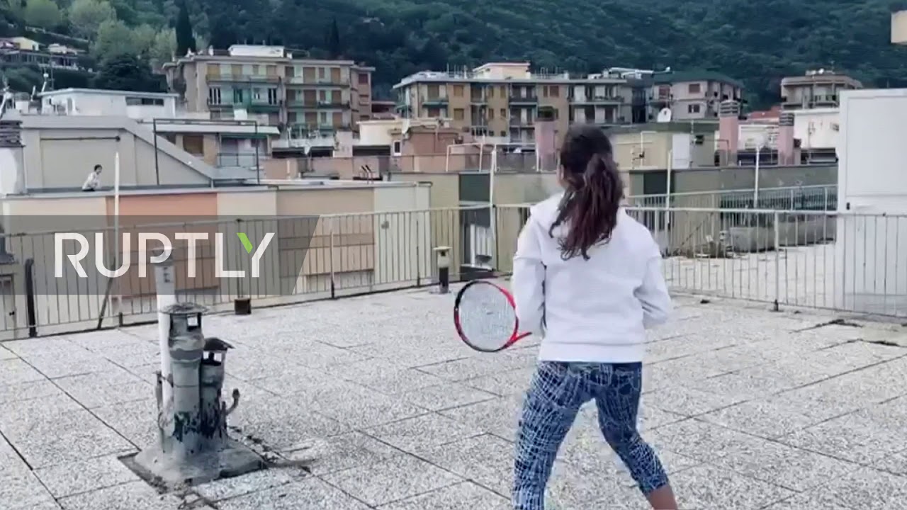 Two young tennis players from Finale Ligure, a small town in northern Italy, were training on rooftop terraces, as a video posted on social media on Friday shows.