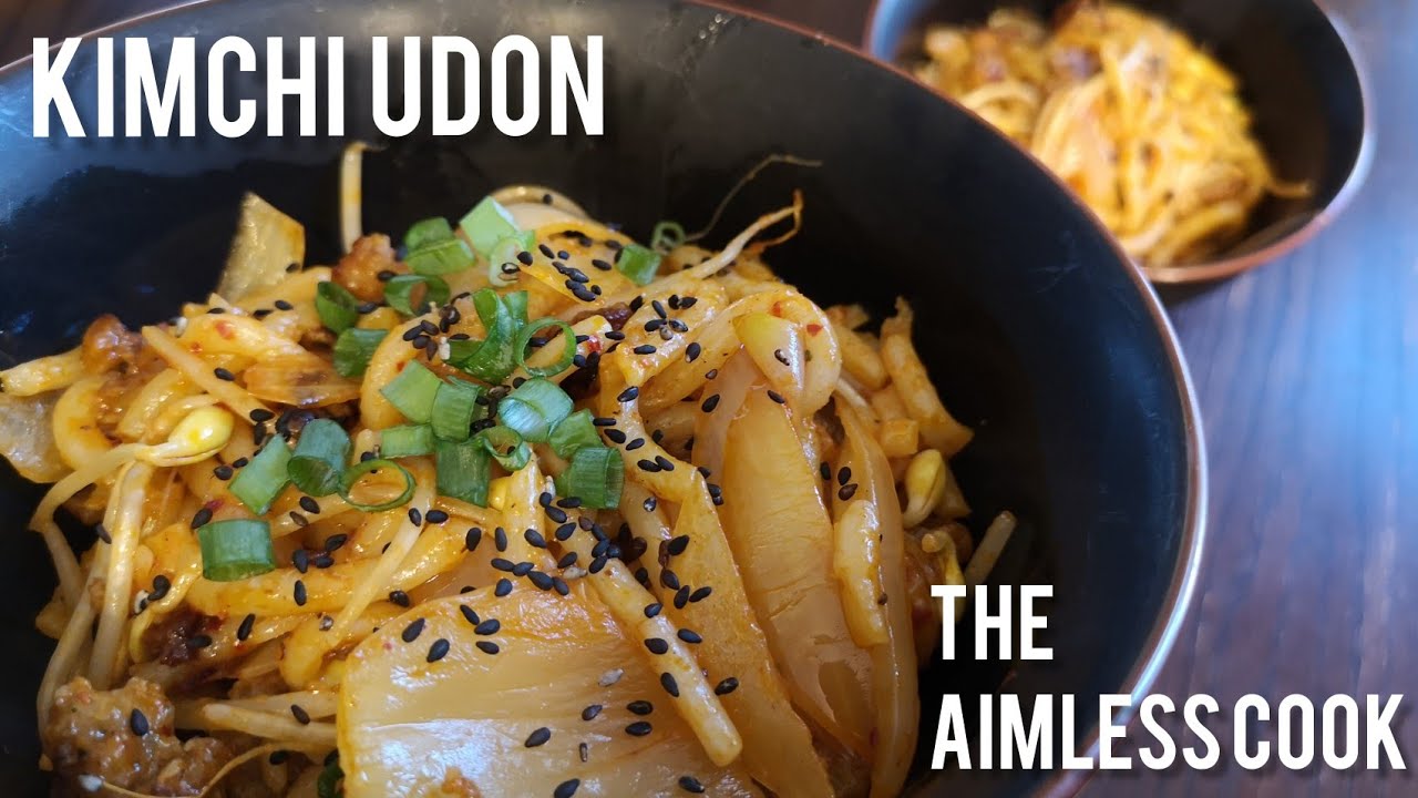 Today, we will be using udon noodles in a simple but delicious stirfry that takes only a few minutes to make. It utilizes umami powerful kimchi and gets another spicy kick and savoury punch from spicy Italian sausage. Add a few components you have lying around like onions, scallions, and butter to make this dish pop. What are we waiting for? Let’s cook!