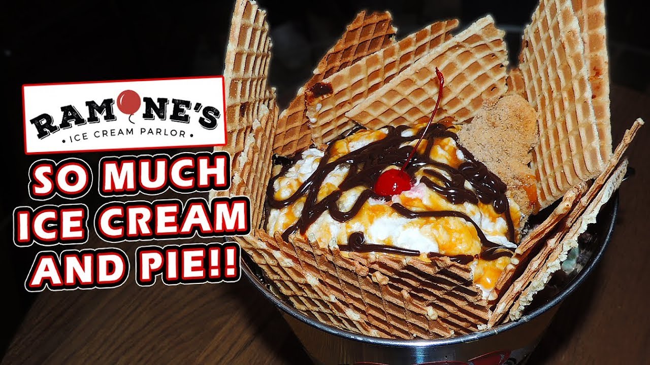 A&Z #823 – Atlas vs Ramone’s 16-Scoop “Milk Pail” Ice Cream Challenge w/ slices of fruit pie at Ramone’s Ice Cream Parlor in Eau Claire, Wisconsin. Hey everybody!! Back in mid-December 2019, as part of my “4th Quarter 2019” Food Challenge Tour, I traveled from Louisville, Kentucky to the Minneapolis, Minnesota area, and on the way I stopped in Eau Claire, Wisconsin which is in western Wisconsin. I went to Ramone’s Ice Cream Parlor to help debut their new 16-Scoop “Milk Pail” Ice Cream Challenge which mainly features 16 softball-sized scoops of ice cream chosen from 24 rotating flavor options, topped with 3 big slices of fruit pie along with other normal sundae toppings. I also had to finish a bottle of soda made by Sprecher Brewery. I chose their root beer which was so good! Thanks so much to Blayne and Kayle (the owners) and their Ramone’s staff for the wonderful ice cream and hospitality, and thanks to all the amazing people who came up to watch and meet me that December evening!! We appreciate everyone around Eau Claire and the rest of Wisconsin watching videos and supporting our efforts!! Many more videos upcoming!!