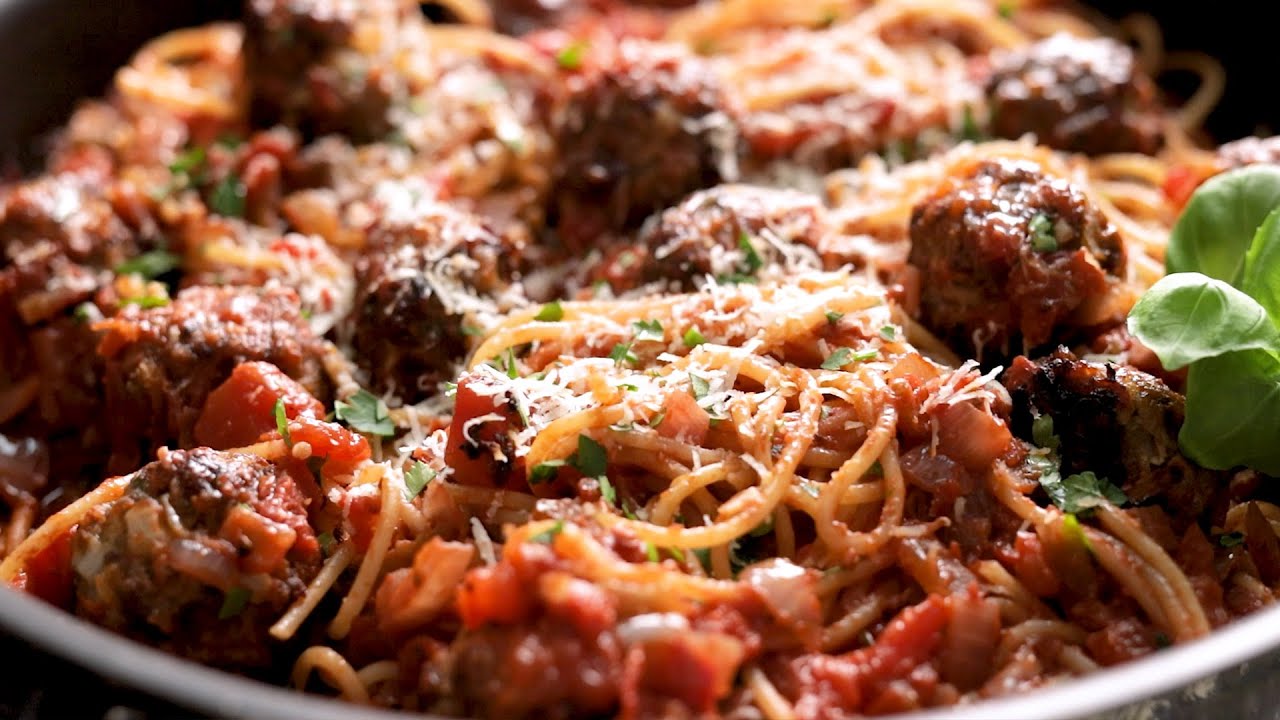 My delicious Spaghetti and Meatballs are a family favourite. Tender, juicy meatballs in a rich tomato sauce. This easy Italian dinner is comfort food at its best.