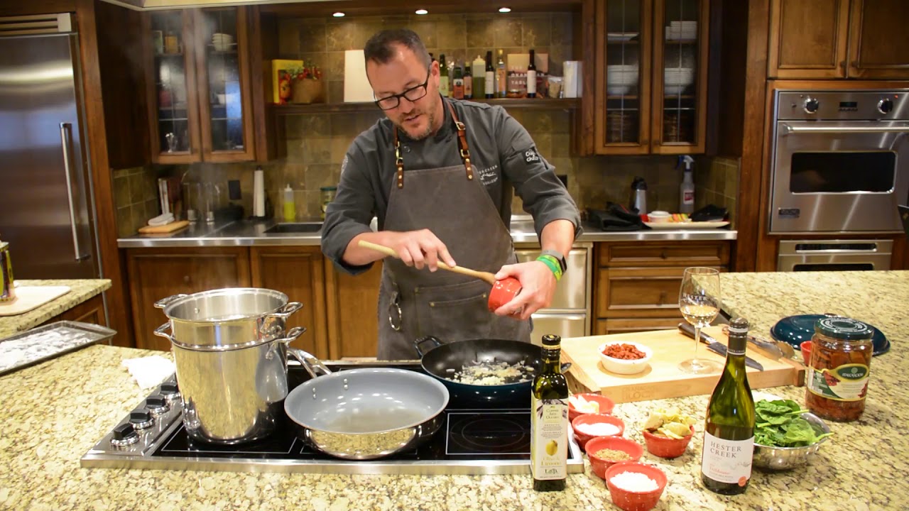 Join Chef Roger for a mini cooking class with homemade gnocchi in a tomato cream sauce, perfectly paired with the Hester Creek Old Vines Trebbiano.